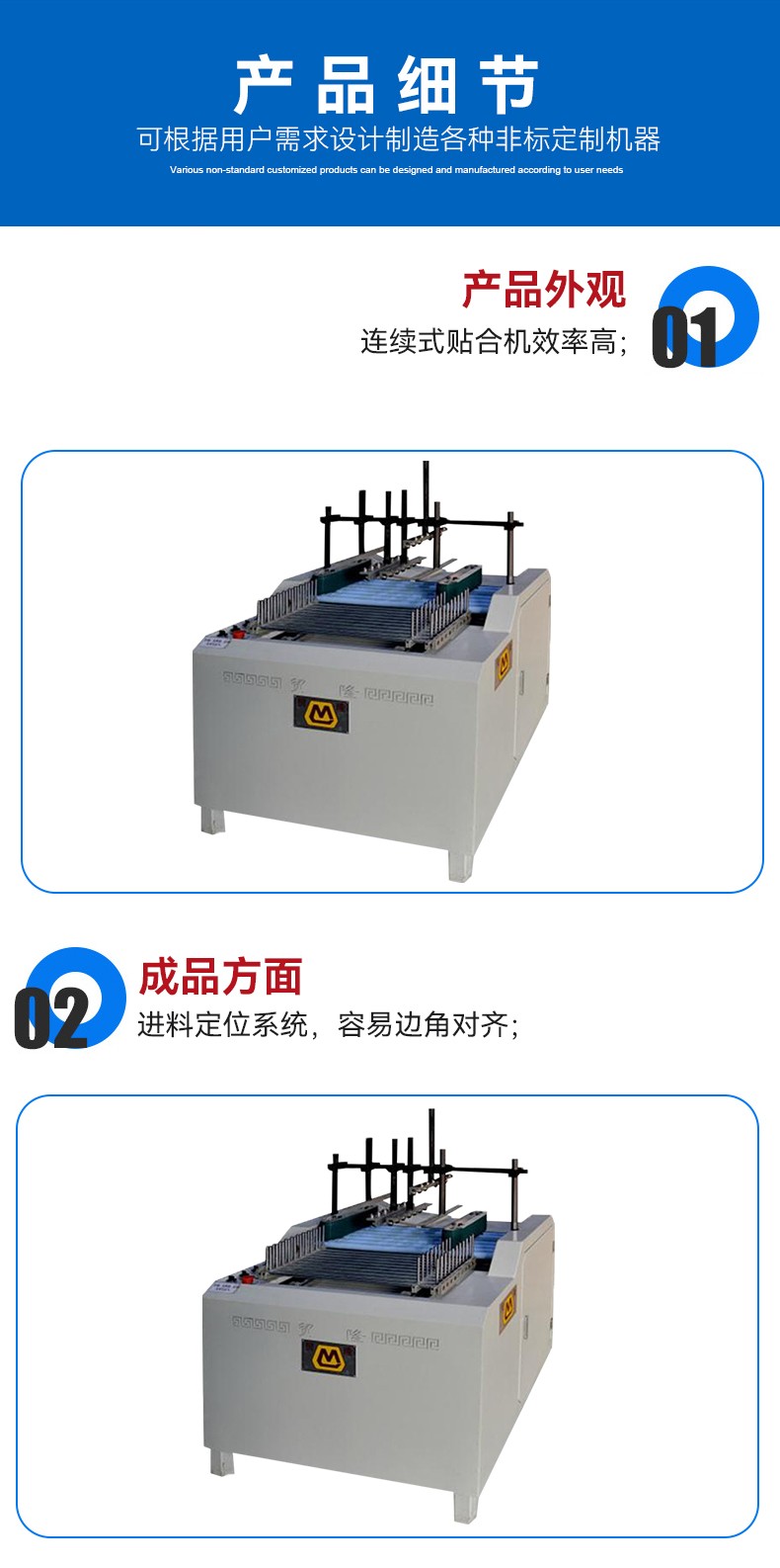 L粘合机 产品简介 突出优势 工作原理 技术参数 应用物料 在线留言 L粘合机 产品简介: 珍珠棉粘框机主要用于珍珠棉框的一次性热风粘合成型 应用范围:针对珍珠棉条的一次热风粘合成型 物 料:珍珠棉条 设备咨询 索取报价 突出优势 1.连续式贴合机效率高; 2.进料定位系统,容易边角对齐; 3.L型U型容易切换。 工作原理 连续式贴合机效率高; 2.进料定位系统,容易边角对齐; 3.L型U型容易切换。 技术参数 应用物料 珍珠棉加工 纸板切割 eva切割机材料 在线留言 * 您的称呼: *联系电话: 使用地区: 请选择 北京市 上海市 天津市 重庆市 河北省 山西省 内蒙古自治区 辽宁省 吉林省 黑龙江省 江苏省 浙江省 安徽省 福建省 江西省 山东省 河南省 湖北省 湖南省 广东省 广西壮族自治区 海南省 四川省 贵州省 云南省 西藏自治区 陕西省 甘肃省 宁夏回族自治区 青海省 新疆维吾尔族自治区 香港特别行政区 澳门特别行政区 台湾省 其它 市: 请选择 产品类别: 请选择 珍珠棉切割设备 珍珠棉粘合设备 珍珠棉开槽设备 涂胶设备 其它 产品型号: 请选择 电子邮箱: 简单描述: